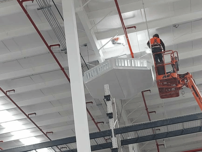- Proyecto LEED con sistema de ventilación forzada con 28 unidades lavadoras de aire con filtros MERV 13, marca Mastercool, y 106 louvers en muro para desfogue de aire, marca NAMM.